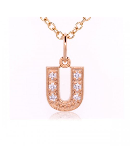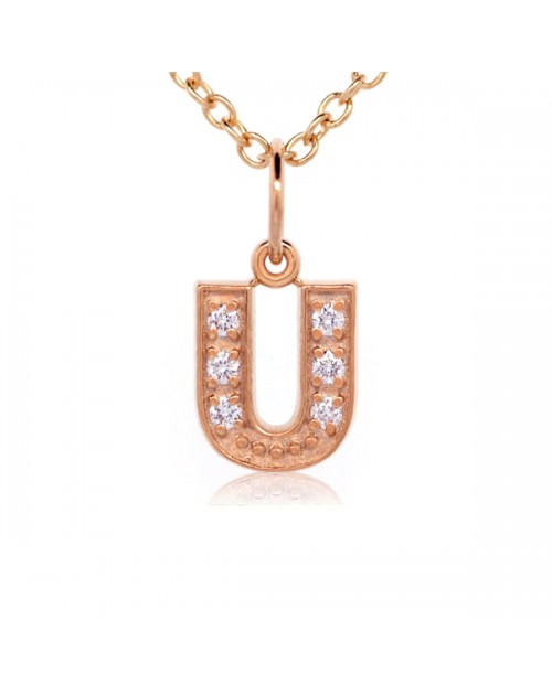 Alphabet Charm, Letter 'U' in 18K Rose Gold with high quality diamonds Alphabet Letters A-Z available. 16" Chain INCLUDED.