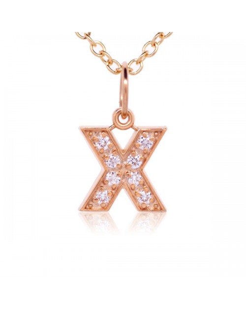 Alphabet Charm, Letter 'X' in 18K Rose Gold with high quality diamonds Alphabet Letters A-Z available. 16" Chain INCLUDED.