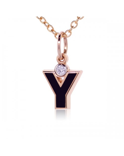 Letter "Y" French Enamel Charm, 18K Rose Gold with High Quality Diamond