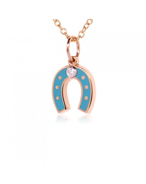18K rose gold Horseshoe charm with excellent quality full-cut diamond. This beautifully hand-crafted charm can be hung on a gold chain. It’s fun, yet elegant in its simplicity. All of our charms can also be made into post earrings and rings sized to your finger. Please email us for more information. 13mm x 8mm (dimensions include loop) The horseshoe symbolizes good luck and protection. All French Enamel Charms are available in 13 colors. If you don't find the color you're looking for, please use the "Product Enquiry" button and let us know. 16" Chain INCLUDED.