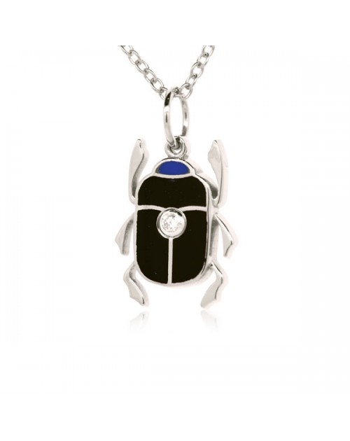 18K white gold Scarab Beetle charm with excellent quality full-cut diamond. This exquisite hand-crafted charm can be hung on a gold chain. All of our charms can also be made into post earrings and rings sized to your finger. Please email us for more information. 16mm x 9mm (dimensions include loop) In ancient times, the Scarab Beetle amulet was a symbol of protection. Please contact us with the color scheme you prefer when you place your order. All French Enamel Charms are available in 13 colors. If you don't find the color you're looking for, please use the "Product Enquiry" button and let us know. 16" Chain INCLUDED.